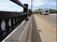 OK, the bridges in Zanesville over the Muskegum river are extremely cool, and not just because one of them is shaped like a “Y,” which apparently it’s famous in some circles for. They are cool because they sing! They are lined with these steel circles, as you can see in the picture below, and when the wind blows just right — as it did today, and vigorously — the circles produce sound just like if you were blowing across the top of a soda bottle. For some reason, they produce different pitches in the same chord series. The 6th St. bridge today was making an E major chord over about an octave and a half range. We took some recordings, but don’t know how to share them on the blog, unfortunately, so you’ll just have to imagine.