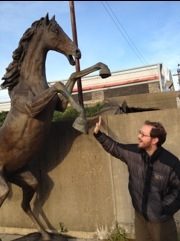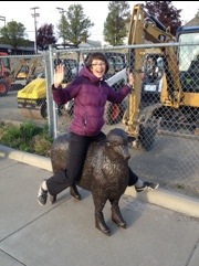 There was a sculpture museum in town that had a bunch of sculptures permanently installed on the sidewalk. We had fun with them. The sheep in the pic below was one of a herd, but this one was special, as you can see.