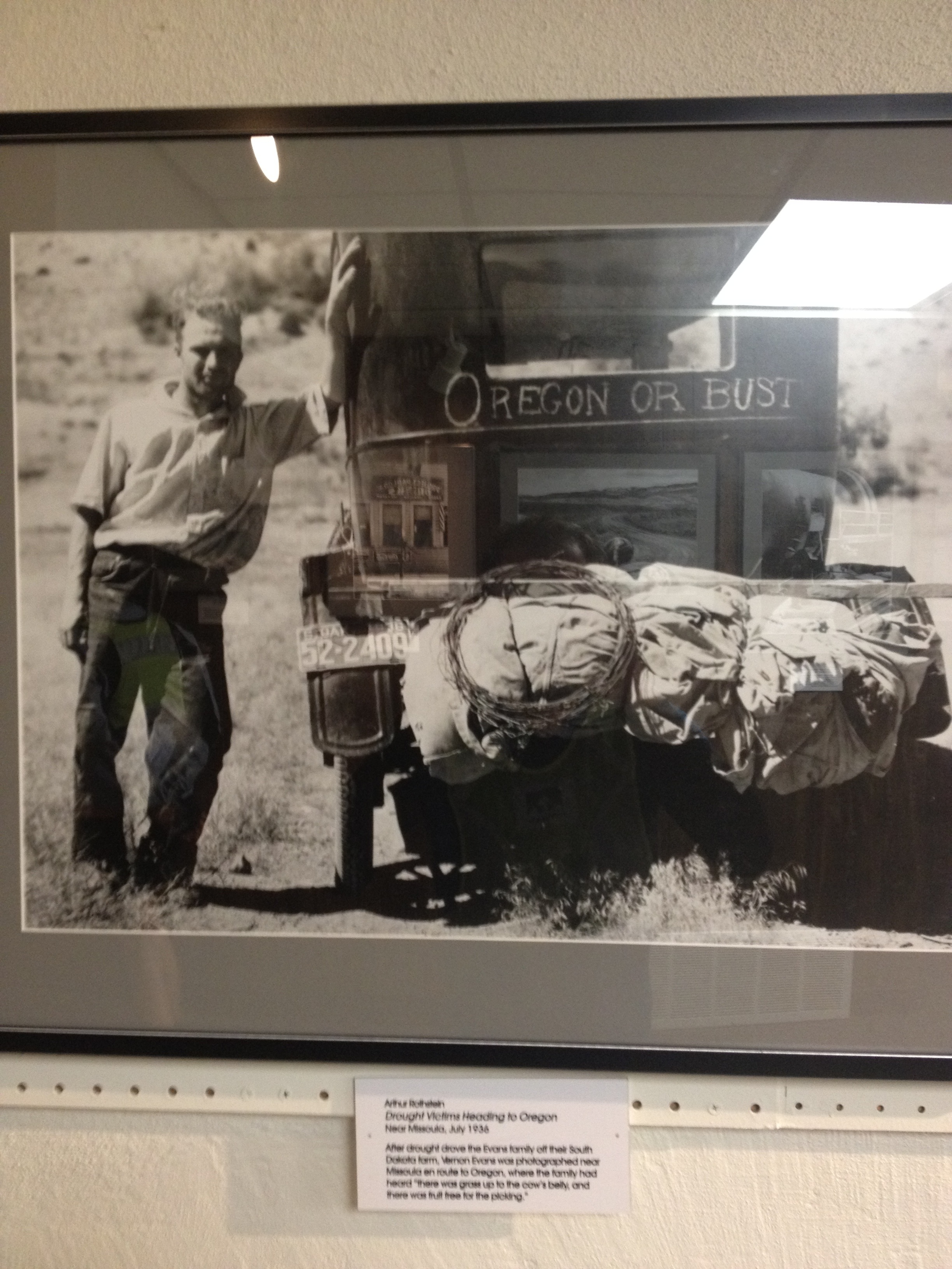 Before leaving Chinook yesterday, we spent a little time hunting for traces of Keowns in town. A 94-year-old in the cafe at breakfast said that the name sounded vaguely familiar to him, though he did not know or remember any people with our last name. At the Blaine County Museum in Chinook we also did not find any mentions of Keowns. We learned from Grandpa Howie that his parents worked at a creamery in Chinook, which explains why there was no mention of them in the museum’s rolls of homesteaders. However, the exhibit on FSA photography in eastern Montana made us quite glad that Grandpa Howie’s family had gotten out of Montana for Oregon before the Great Depression, unlike this guy: