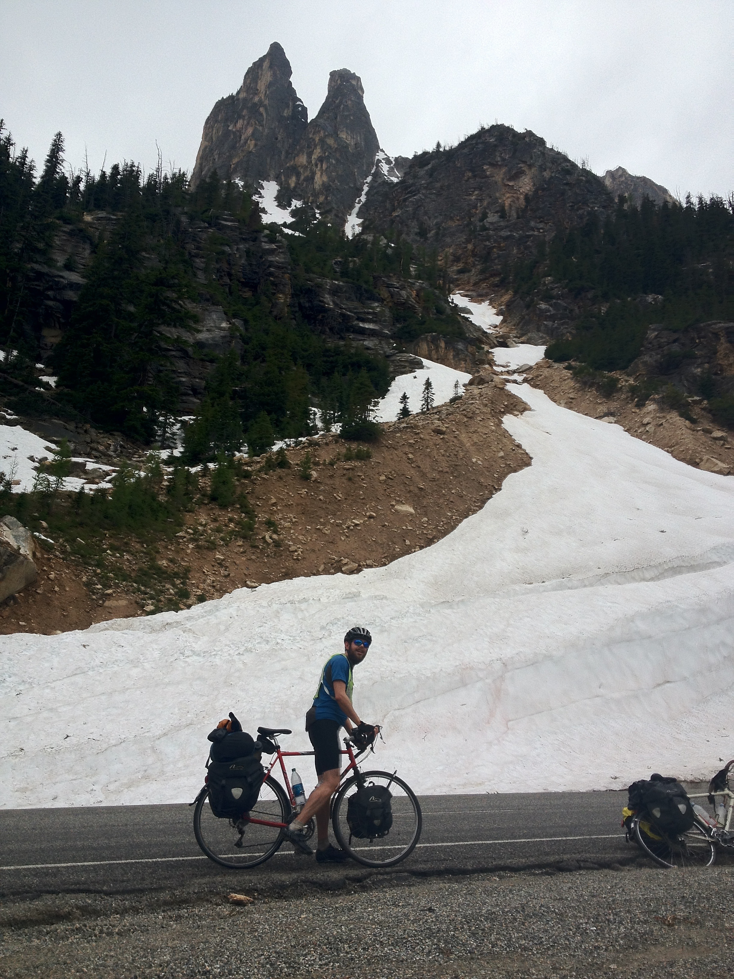 Triumphantly, we biked over Washington Pass today and are camping tonight at the Colonial Creek NPS campground on Diablo Lake, 10 mi. east of Newhalem. For all the work we did today, we’re only 500 feet lower than where we started this morning in Winthrop. Tomorrow we’ll hit up Sedro-Woolley; Sunday we’ll bike to Ebey’s Landing after hitting the coast and catch the ferry down to Port Townsend; Monday we’ll bike to Bainbridge and get the ferry into downtown Seattle for our last day.