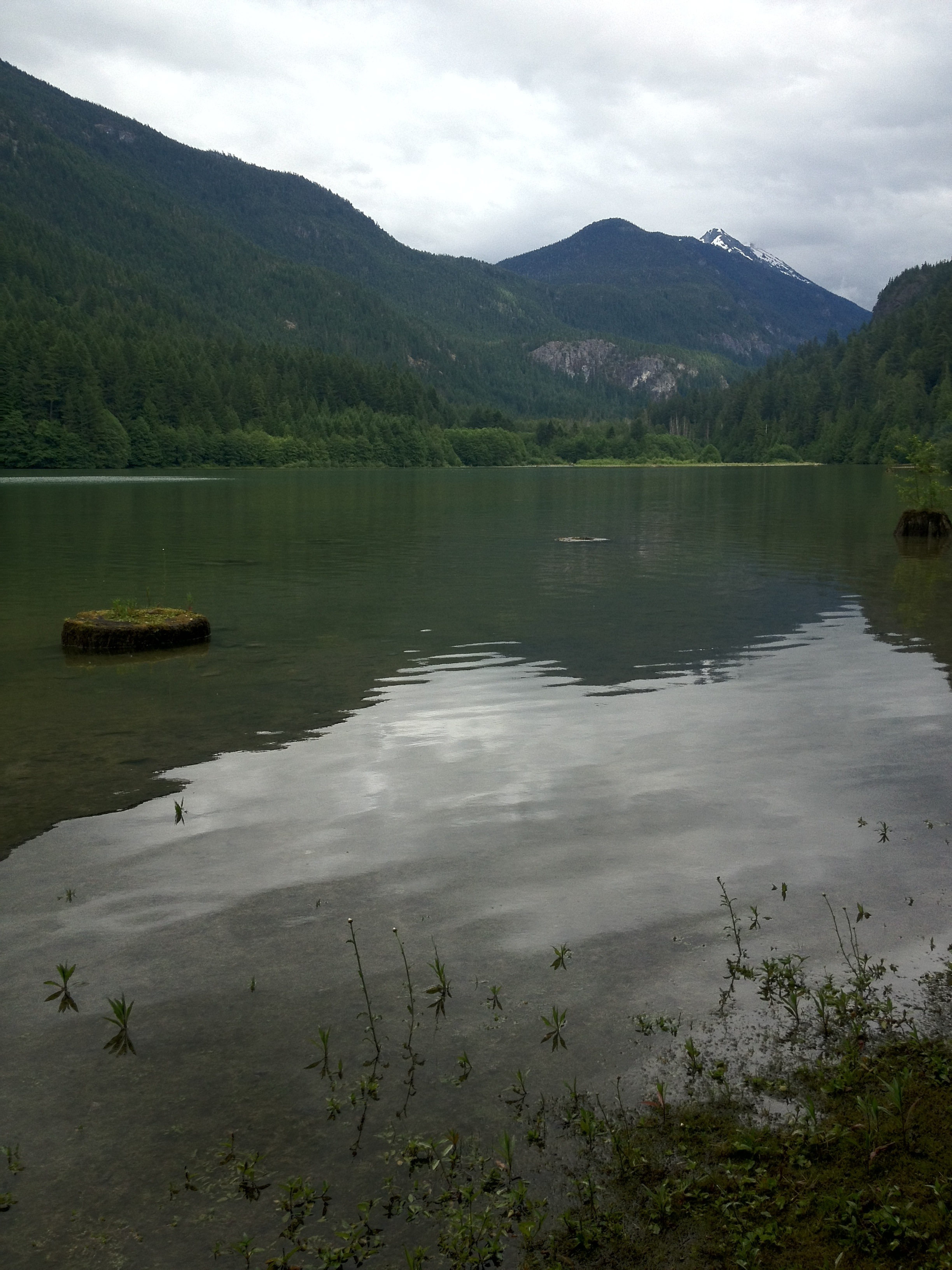 We didn’t take nearly as many pictures on the way down because it’s a bummer to stop when you’re coasting like a fiend. Here’s one, of Ross Lake:
