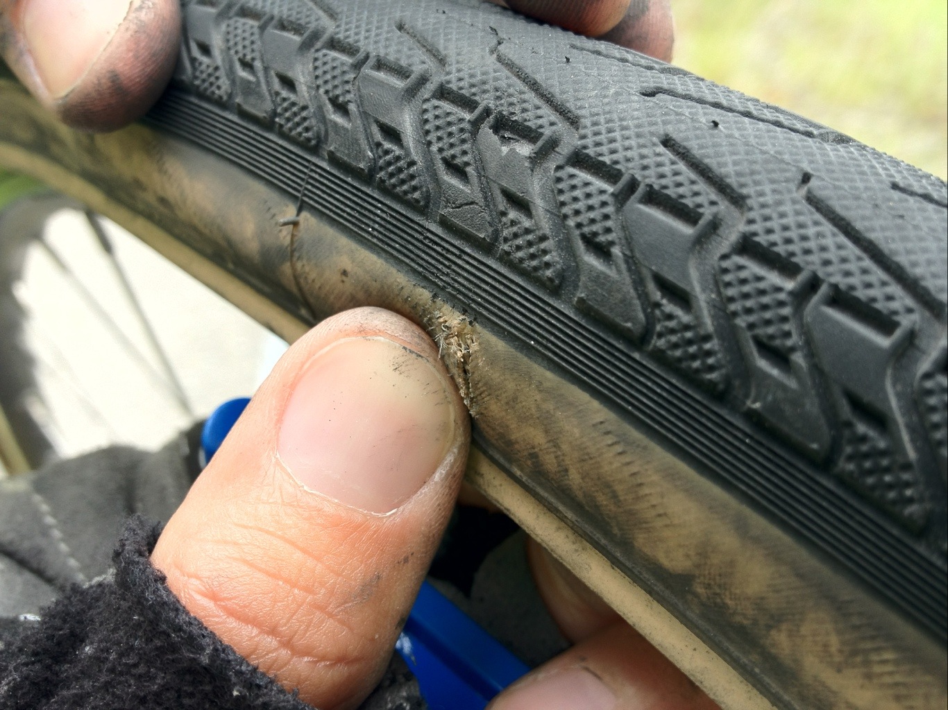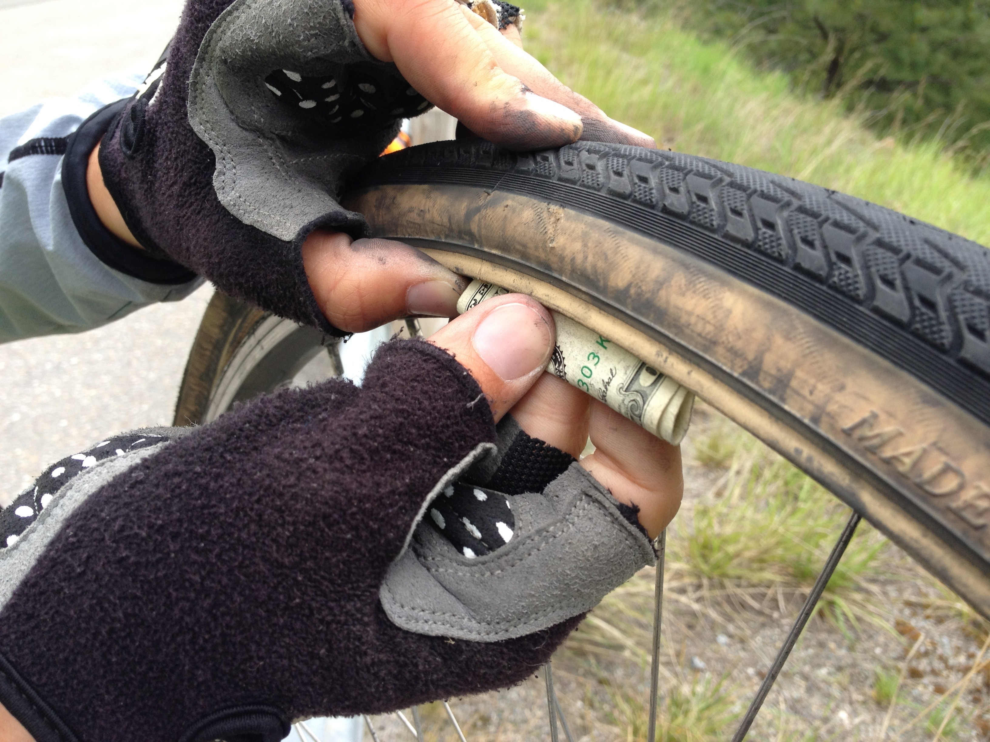 And then Brice knew a handy trick for reinforcing the wall of the tire at the rip to prevent a repeat blowout: