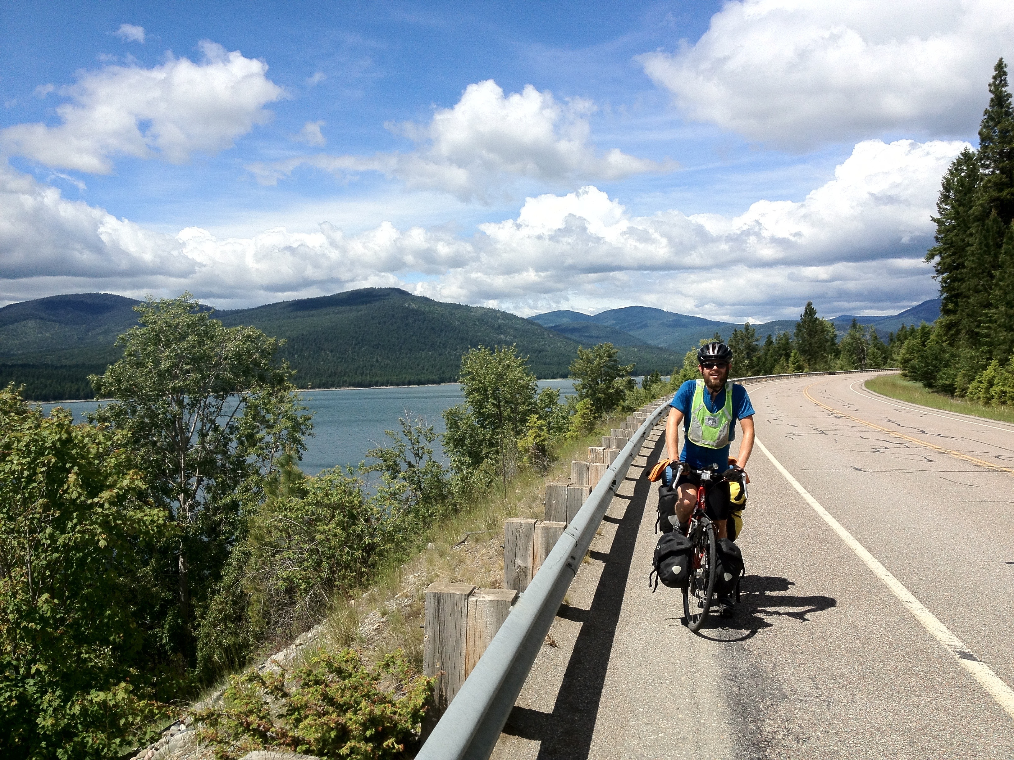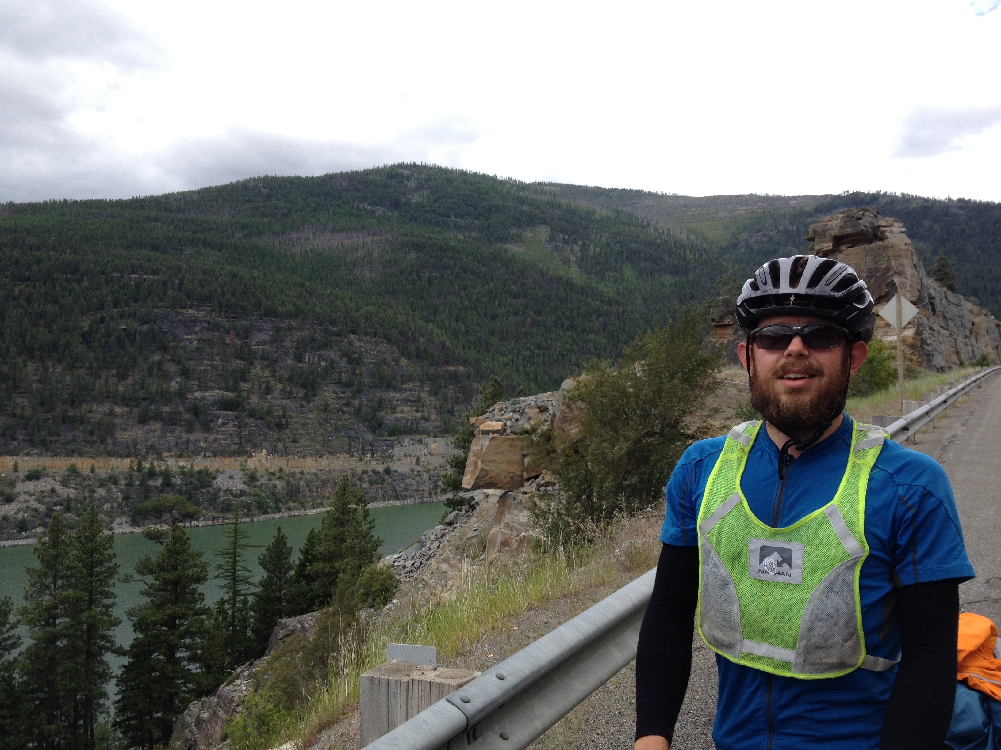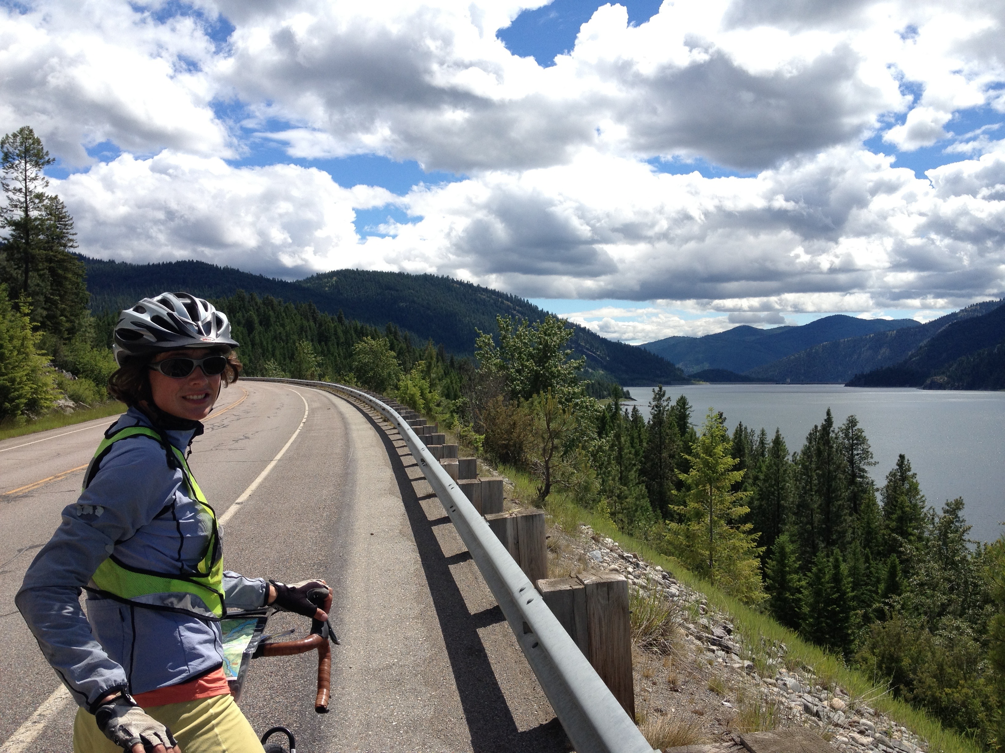 Today we rode south from Eureka to Libby along the eastern edge of Lake Koocanusa, which was created by the Libby Dam, a distance of over 70 miles. Despite the 100% chance of rain, there was no rain and the day progressively got warmer and sunnier. The terrain was fun and hilly and nicely blocked the headwind we were supposed to have. Overall, it was a really enjoyable day of riding.