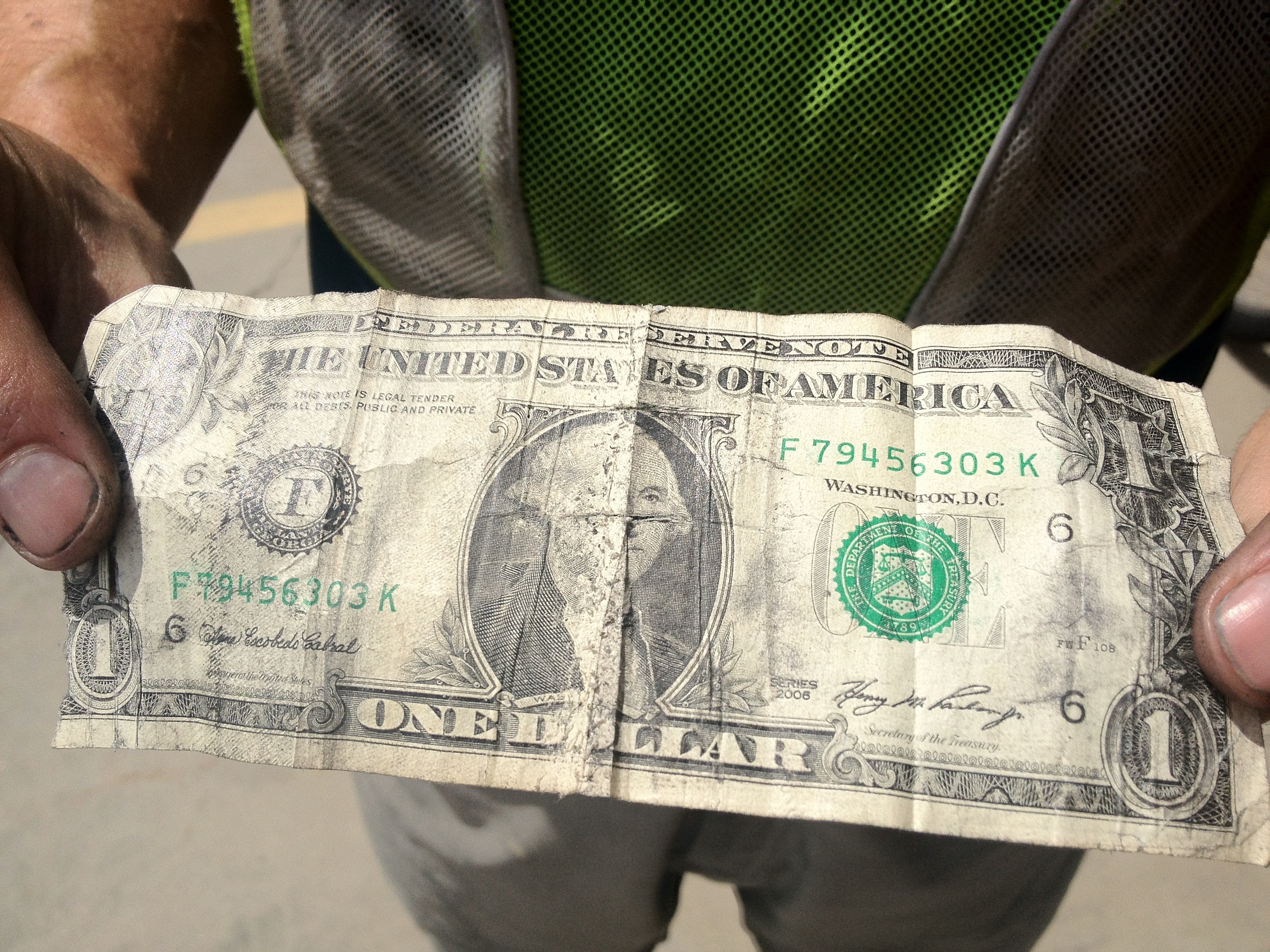 Here’s what a dollar looks like after it holds your tube in place for 120 miles: